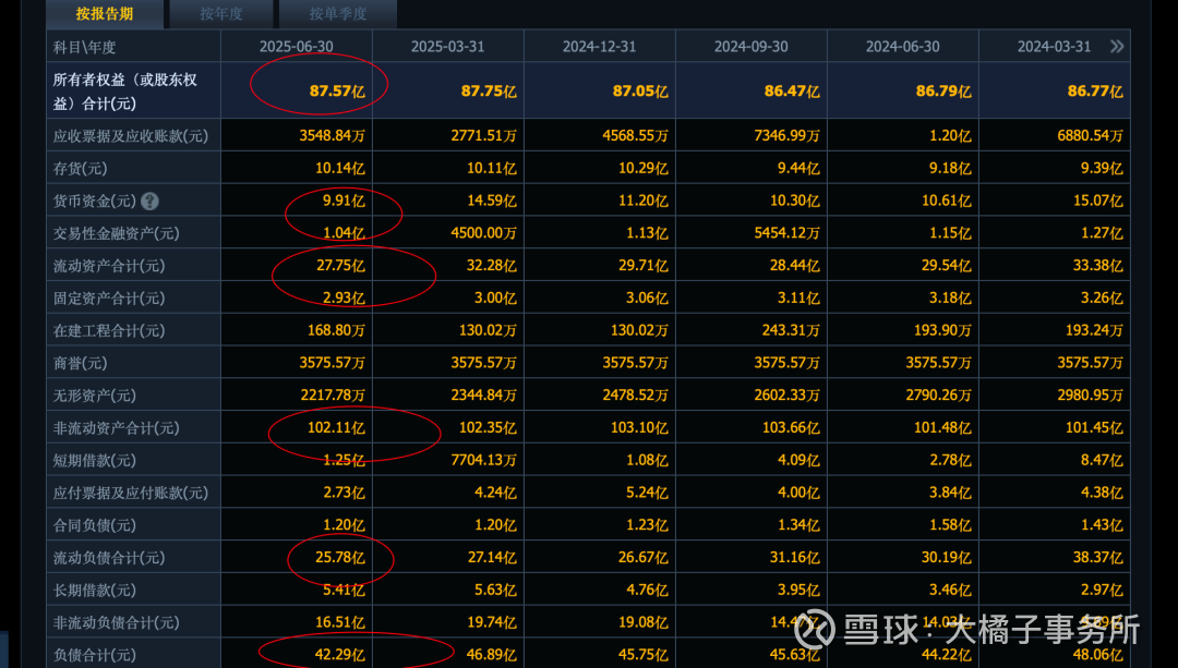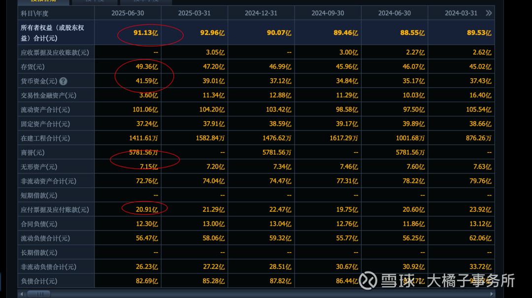 91 亿权益,减掉 7 亿无形资产是 84 亿。存货和现金占了 90 亿。但是整体债务也比较重。