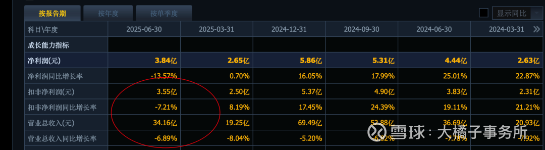 2025 年中报有轻微下滑: