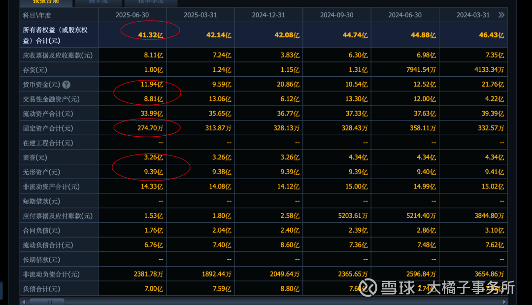 41 亿权益,减掉商誉和无形资产顶多 30 亿家底。轻资产模式,20 亿现金充沛。