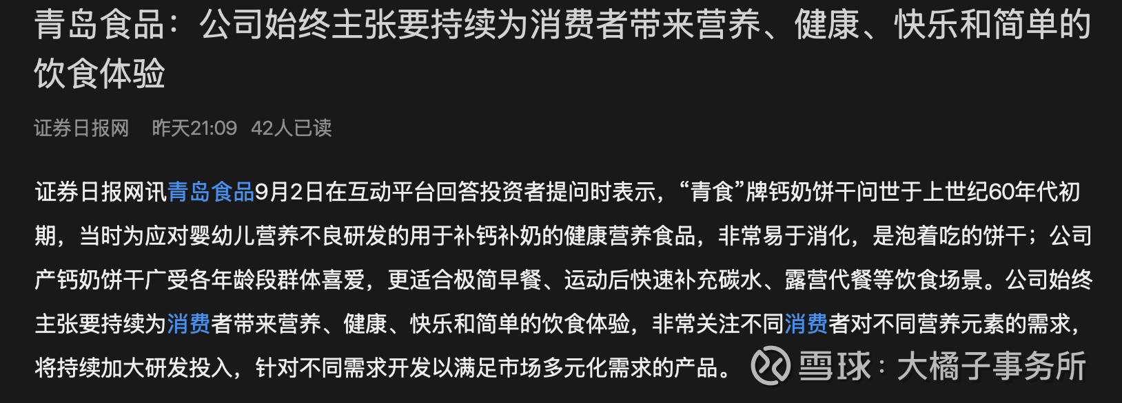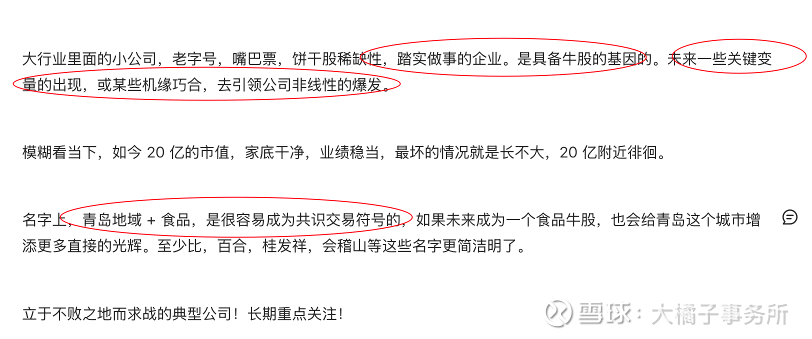 去年 20 亿的时候,大橘子旗帜鲜明的看好青食(见 大橘子投资价值发现系列 625:青岛食品,国内区域性饼干小龙头):