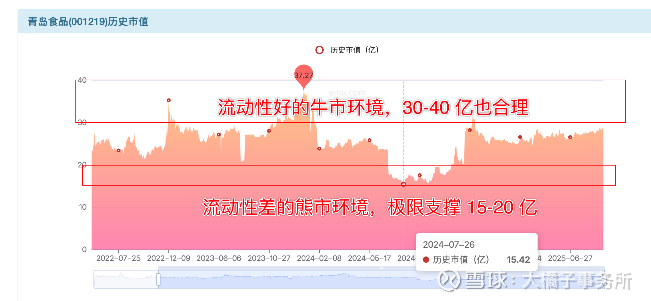 当下,考虑流动性,模糊看,20-30-40 亿是波动区间。2 亿股本,10-15-20 是价格参考。15 块可上可下,短期视角并没有确定性。