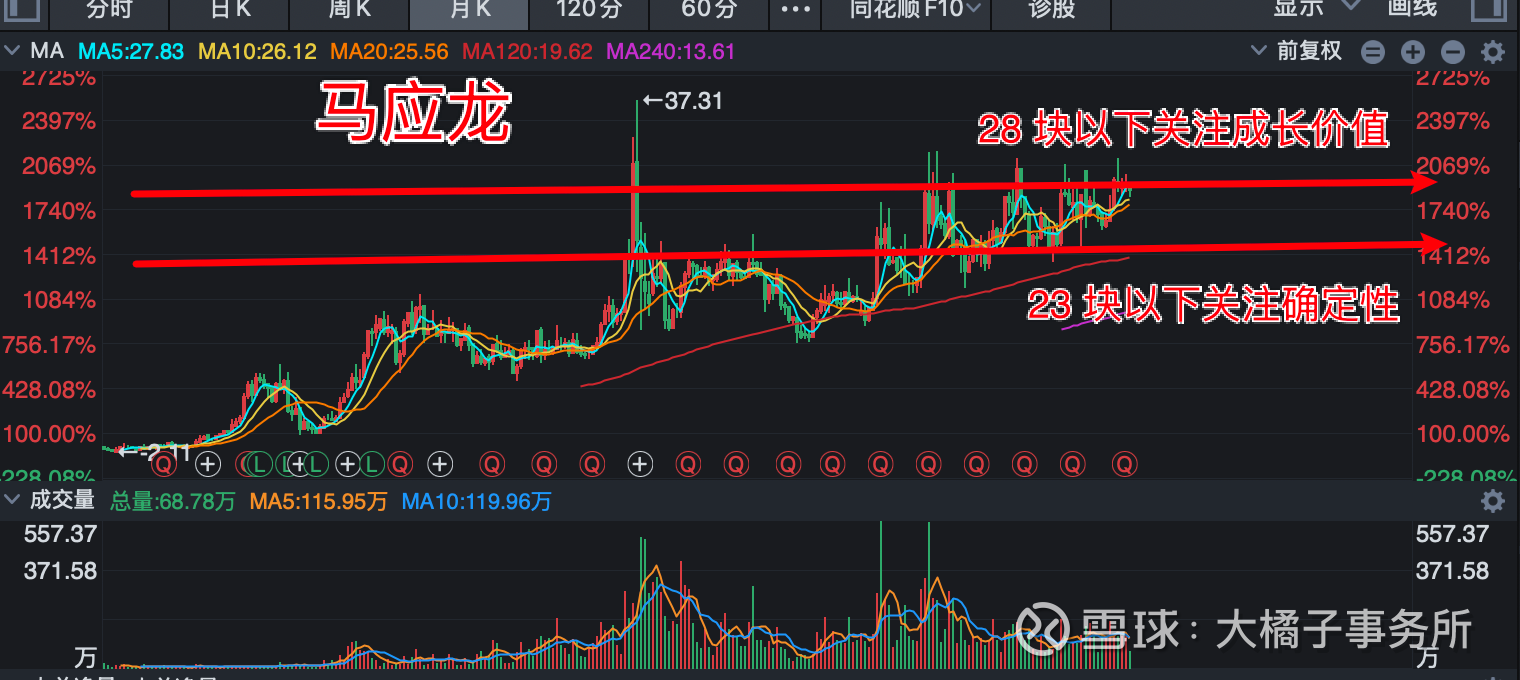 4.31 亿股本,100 亿-120 亿市值,23 块以下确定性好;28 块以下做成长。溢价看 4 pb 附近,大概 40 块上下。