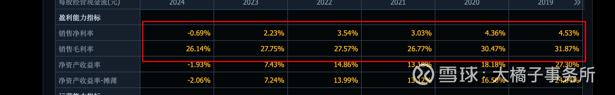毛利率下滑,净利率好的时候也就是 3%-4%。只能靠规模,一旦收入持续下滑,就很难了。非常辛苦。