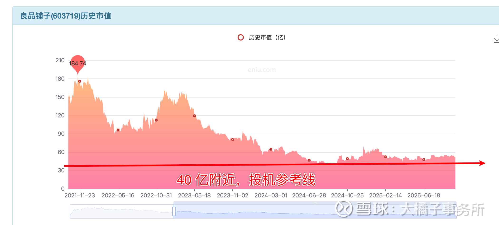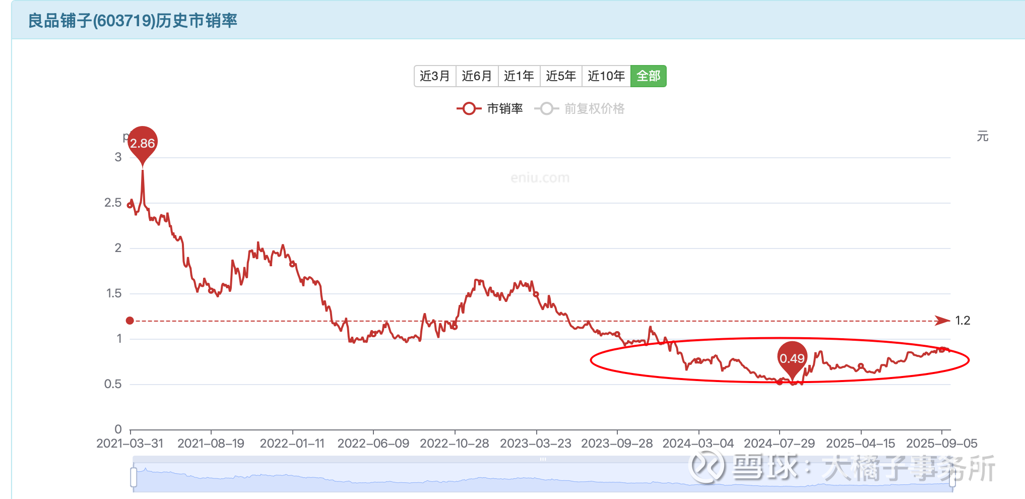 食品票 ps 破 1 的非常少见,这个是矛盾(如果未来业绩能好转,净资产不损伤,那就肯定会有向上的市值脉冲,能否守住看利润能否延续;如果持续的好不了甚至恶化,40 亿就会成为新的波动中枢上下皆有可能),毕竟良品这个品牌依旧是有价值的: