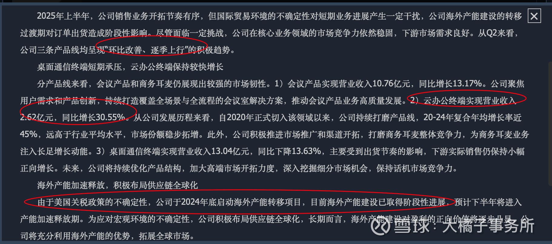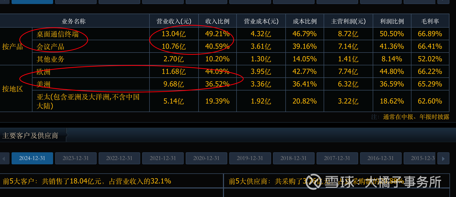 生产和销售统一通信终端产品及高清视频会议系统,包括设计、开发、生产、销售企业通信终端设备及相关技术咨询服务等。公司的主要产品是会议产品、云办公终端、桌面通信终端。