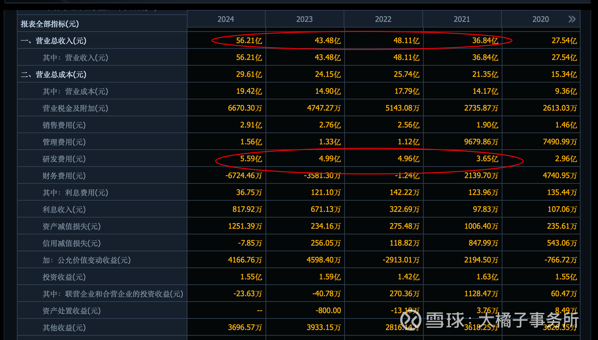 56 亿收入,5.6 亿研发费用是三费大头,10% 比例。