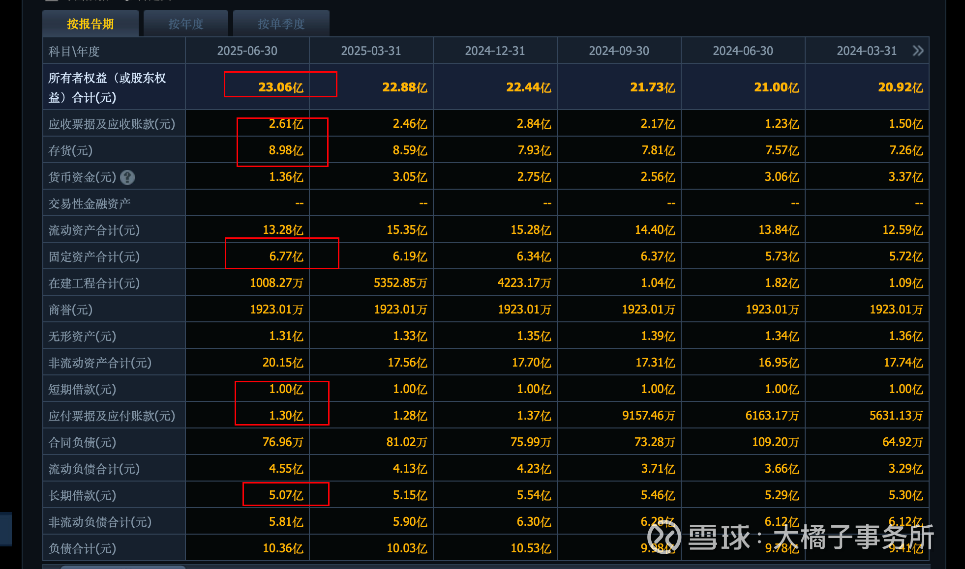 23 亿的权益,应收存货占了 11 亿多,固定资产 6.7 亿,现金流差一些,还有 5 亿的长期借款。