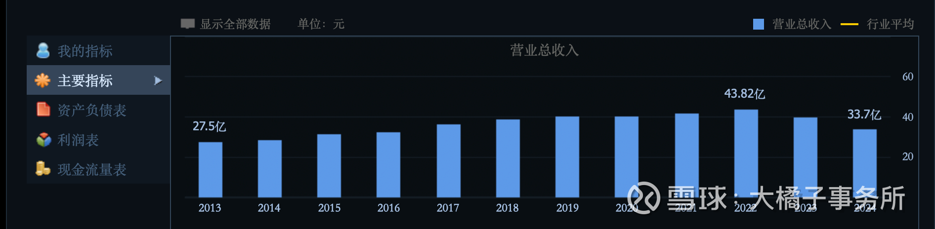 下滑到 34 亿的收入了: