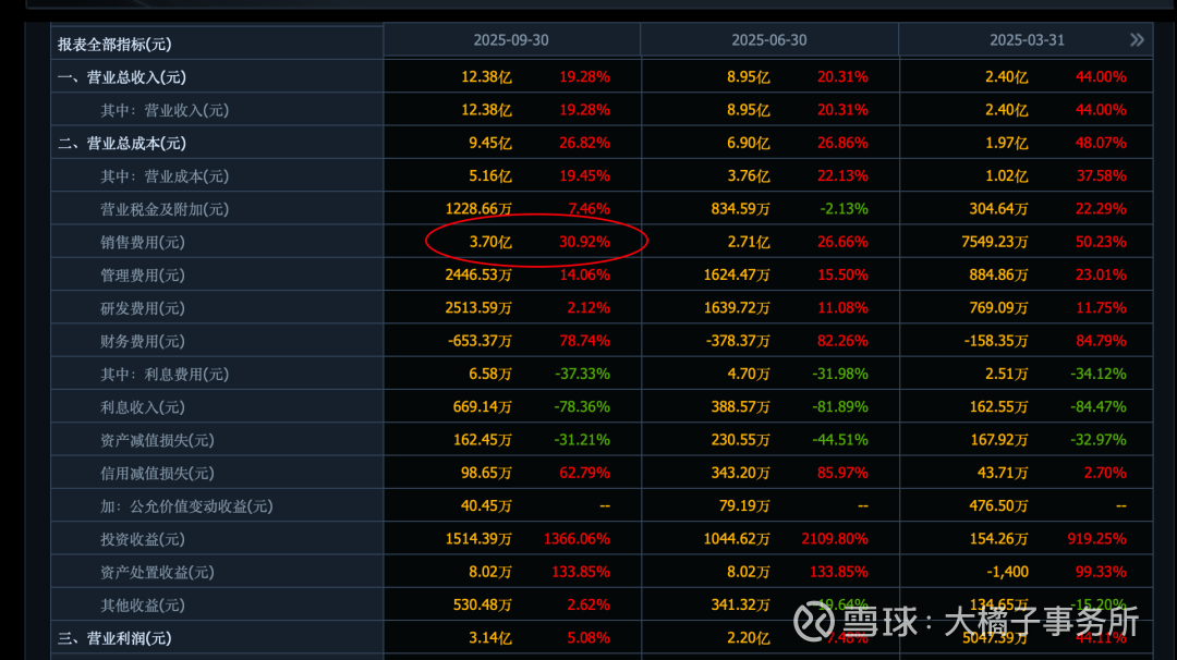 花了更多的销售费用,30% 比例,收入增幅小于销售费用增幅: