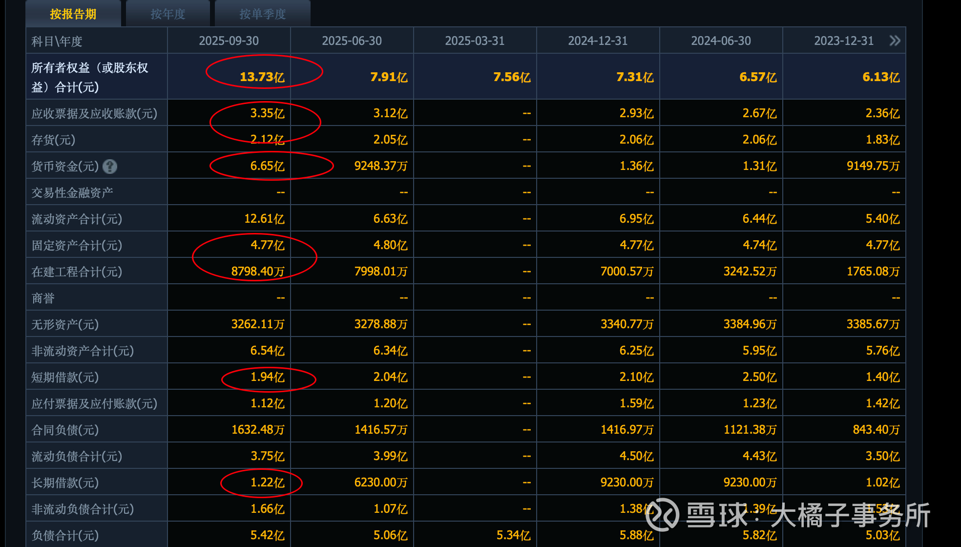 13 亿的权益,5 亿+ 固定资产,5 亿应收存货,6 亿现金,负债里面有 3 亿+ 借款: