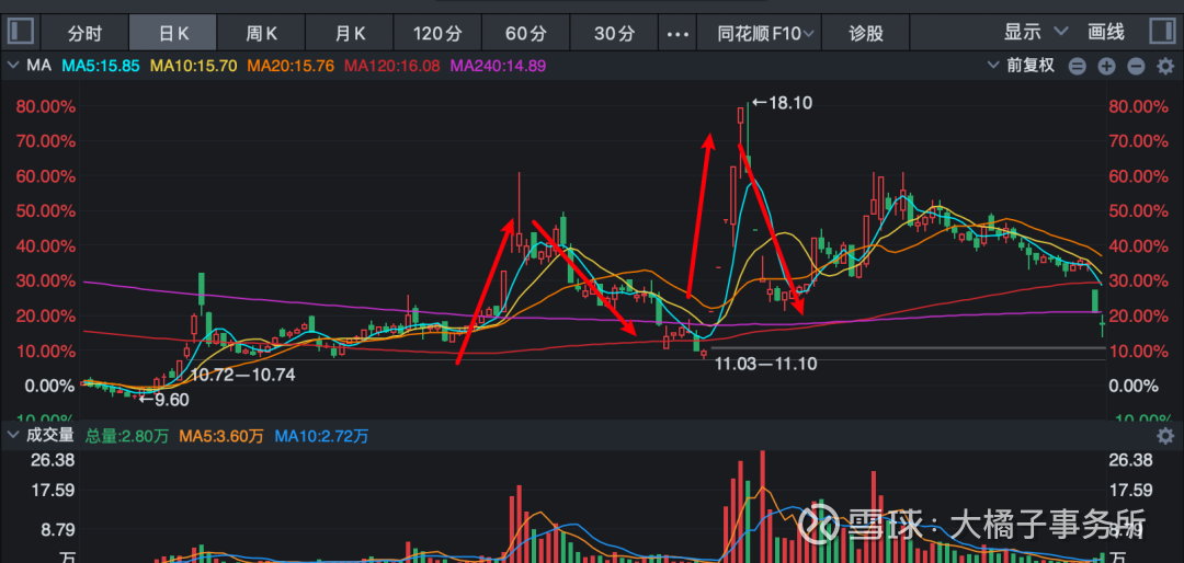 这个票是有明显的资金“操控”的痕迹的,大涨之后大跌,大开大合。