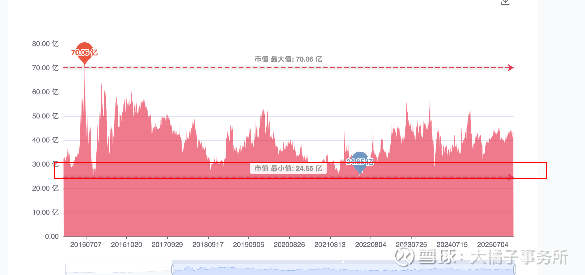 市场的支撑 25-30 亿的市值,2 pb 附近,30 倍成长估值对应 1 亿的潜在利润释放。当下 40 多亿的市值不可把握。