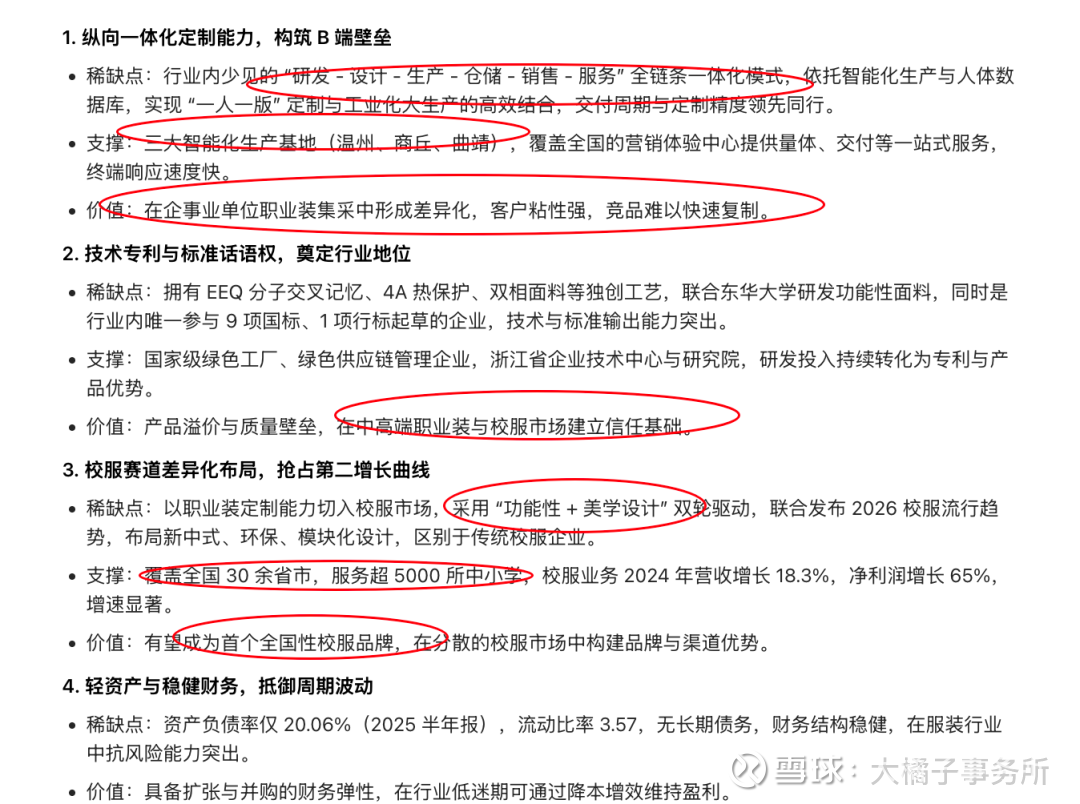 稀缺性体现:在于定制服装全链条能力、技术标准话语权与校服差异化布局,这是其 “小而美” 的核心基础。
