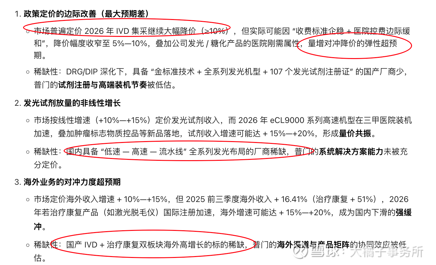 未来边际情况持续追踪:预期差核心来自政策定价修复 + 发光试剂放量 + 海外高增长三方面。