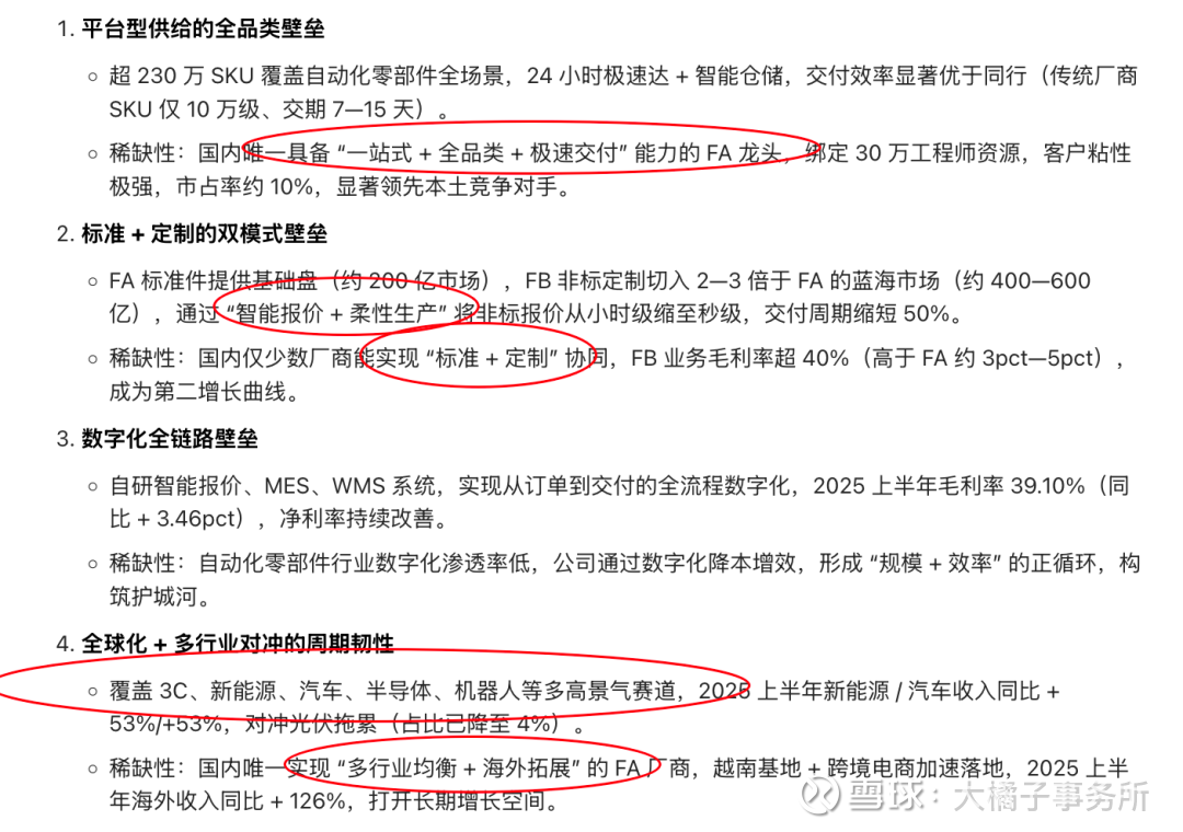 平台 + 标准 + 定制 + 数字化的复合壁垒,国内 FA 龙头稀缺性显著,具备长期定价权。未来景气预期好,共识即价值,只是没有好的价格。总要有取舍吧。