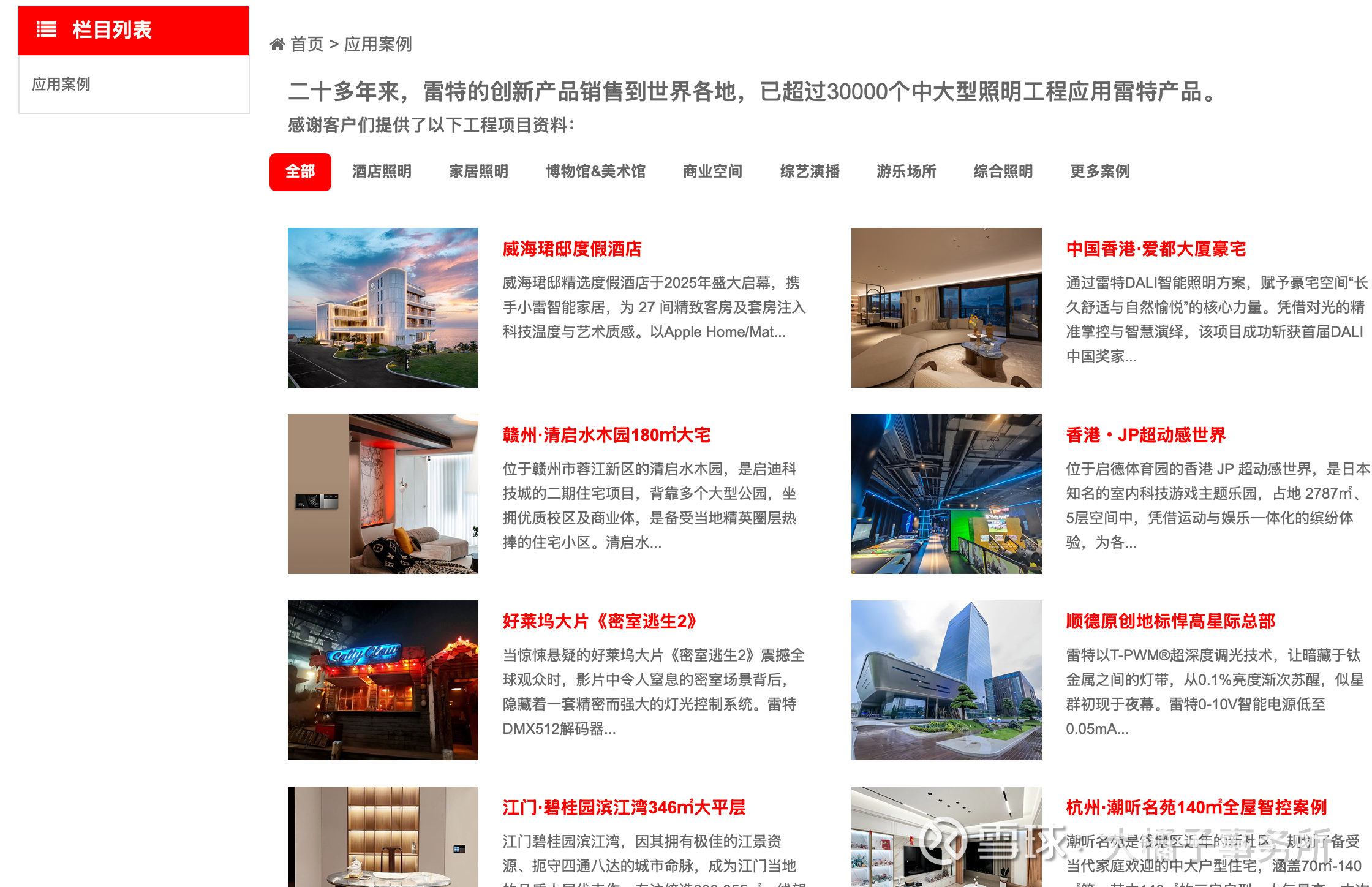 二十多年来,雷特的创新产品销售到世界各地,已超过30000个中大型照明工程应用雷特产品。