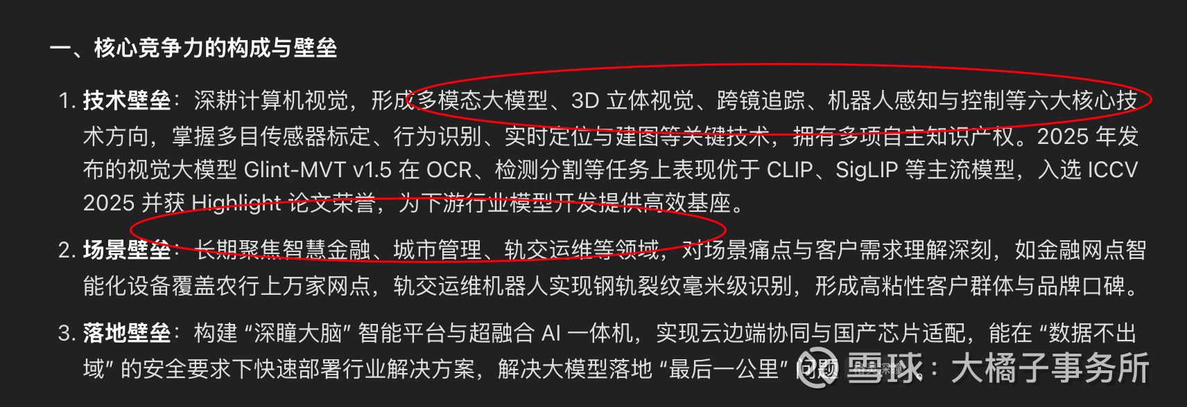 核心竞争力:深耕计算机视觉,形成多模态大模型、3D 立体视觉、跨镜追踪、机器人感知与控制等六大核心技术方向,掌握多目传感器标定、行为识别、实时定位与建图等关键技术,拥有多项自主知识产权。