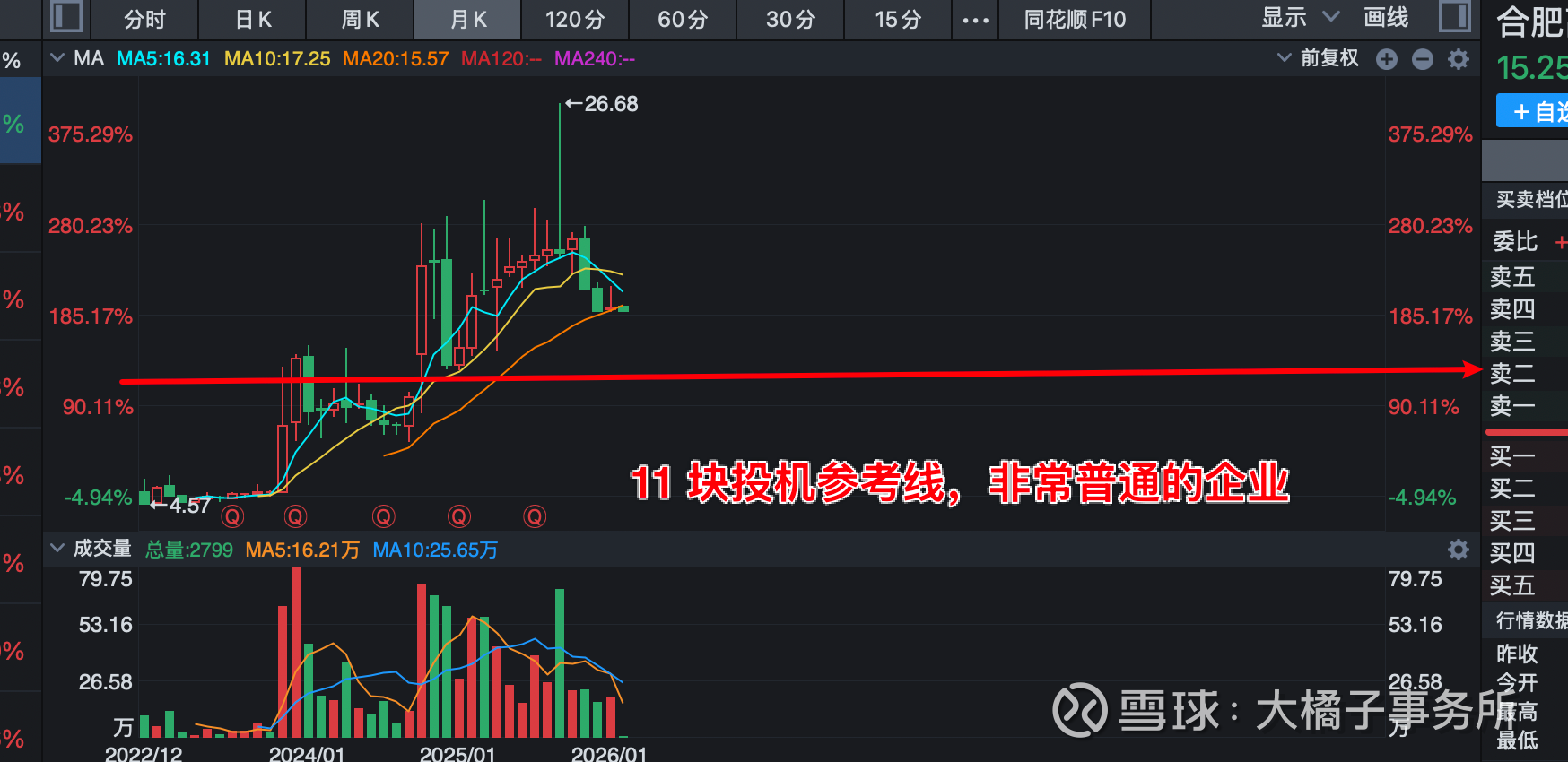 0.91 亿股本,10 亿市值,11 块附近,投机参考线。