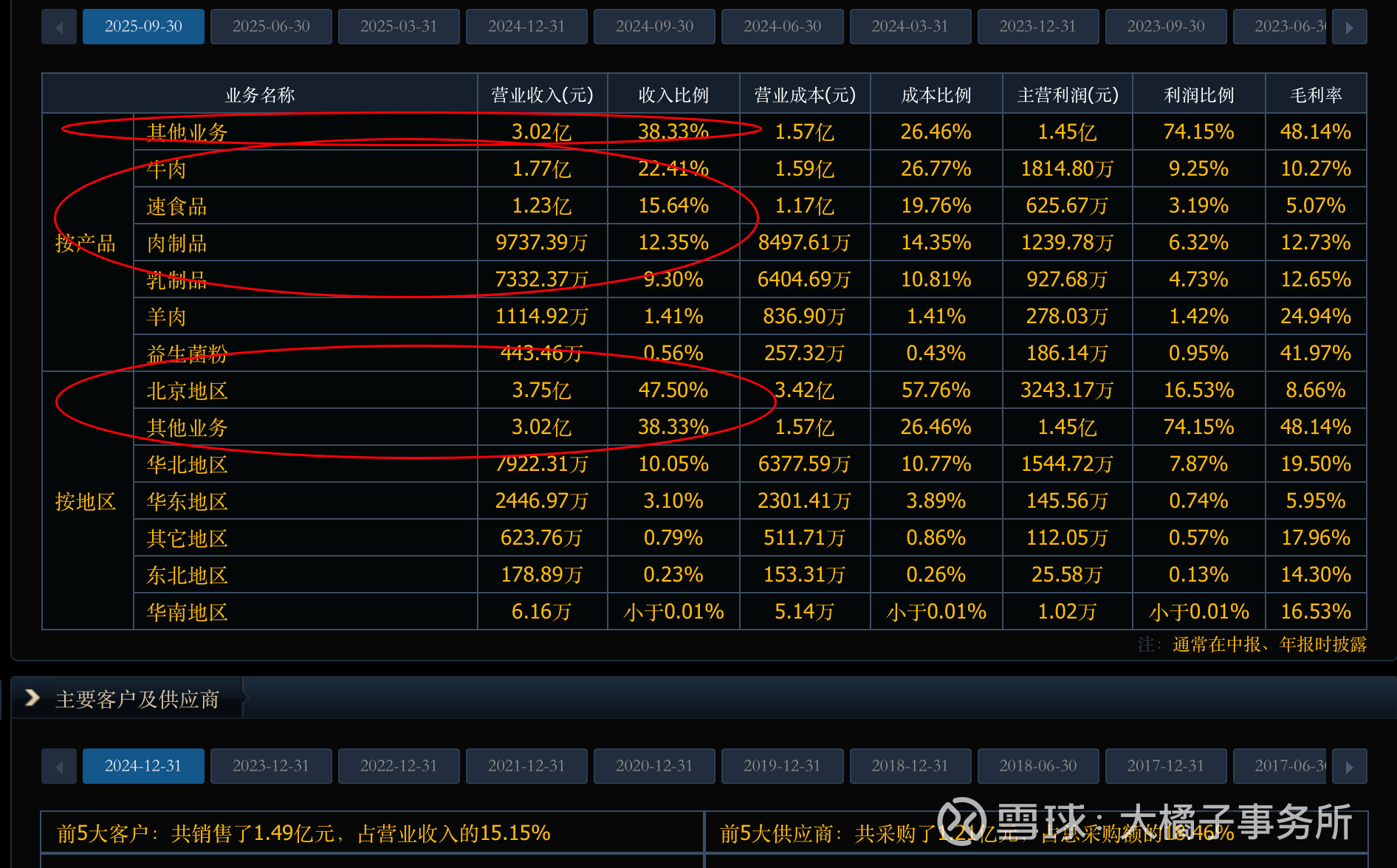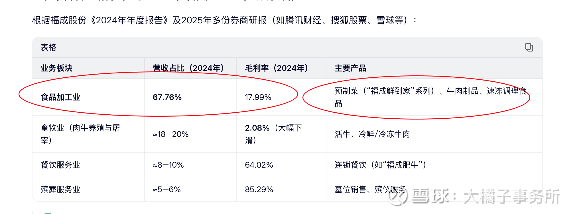 收入的大头是食品加工业,尤其是预制菜和牛肉制品相关业务。