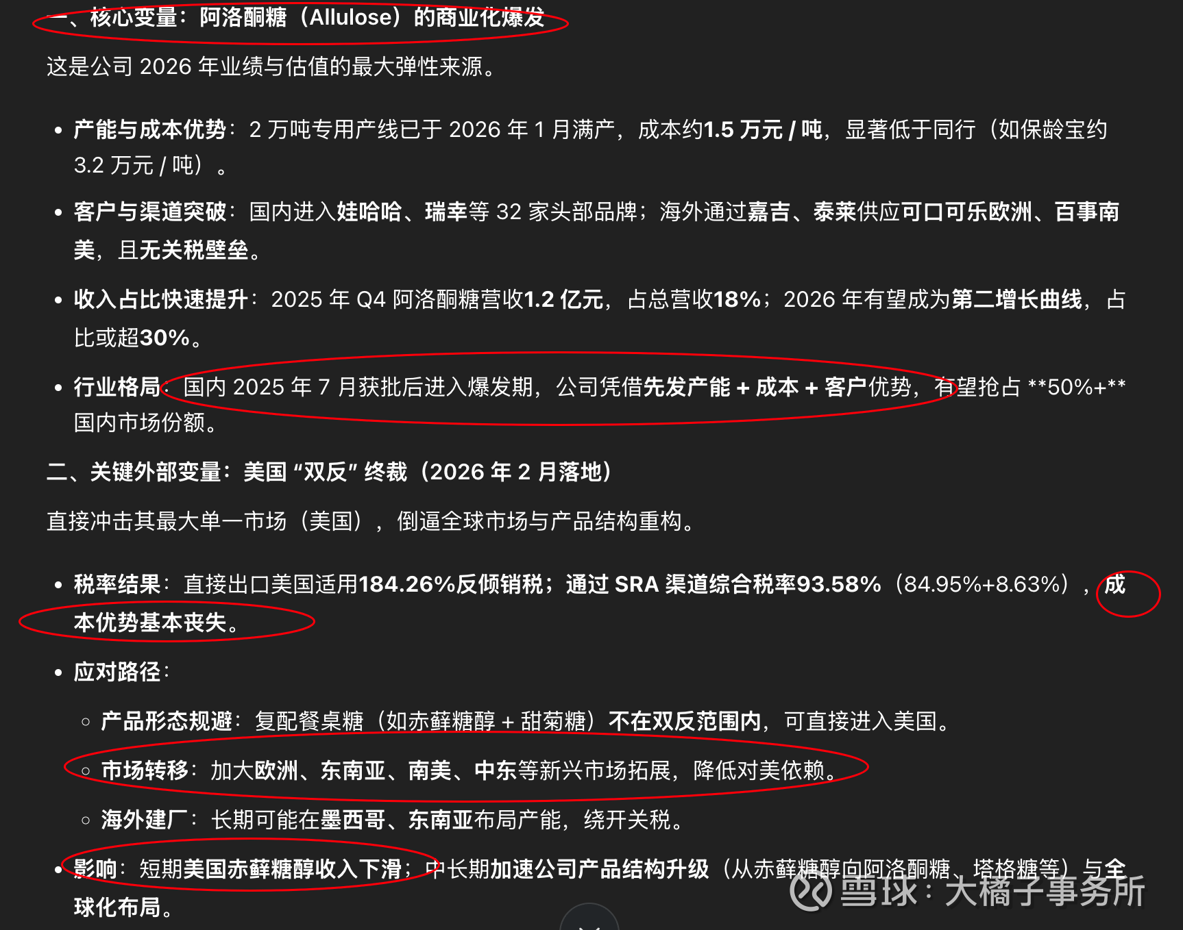 2026 年三元生物发展的最大变量是阿洛酮糖的商业化爆发与美国 “双反” 终裁后的全球市场重构,两者共同决定公司能否从赤藓糖醇单一龙头,转型为多品类代糖平台。
