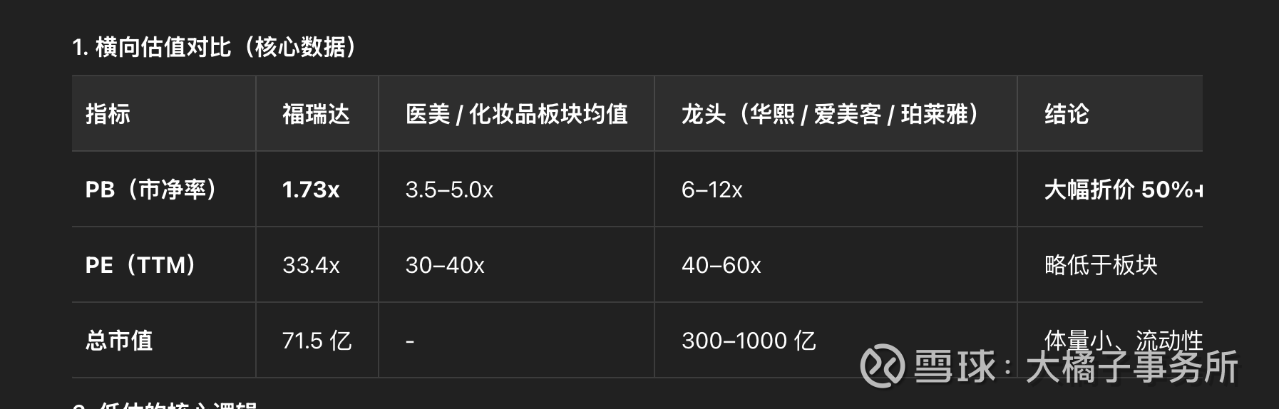 福瑞达是医美 + 化妆品,双板块里面,pb 溢价最小的,不到 2 pb: