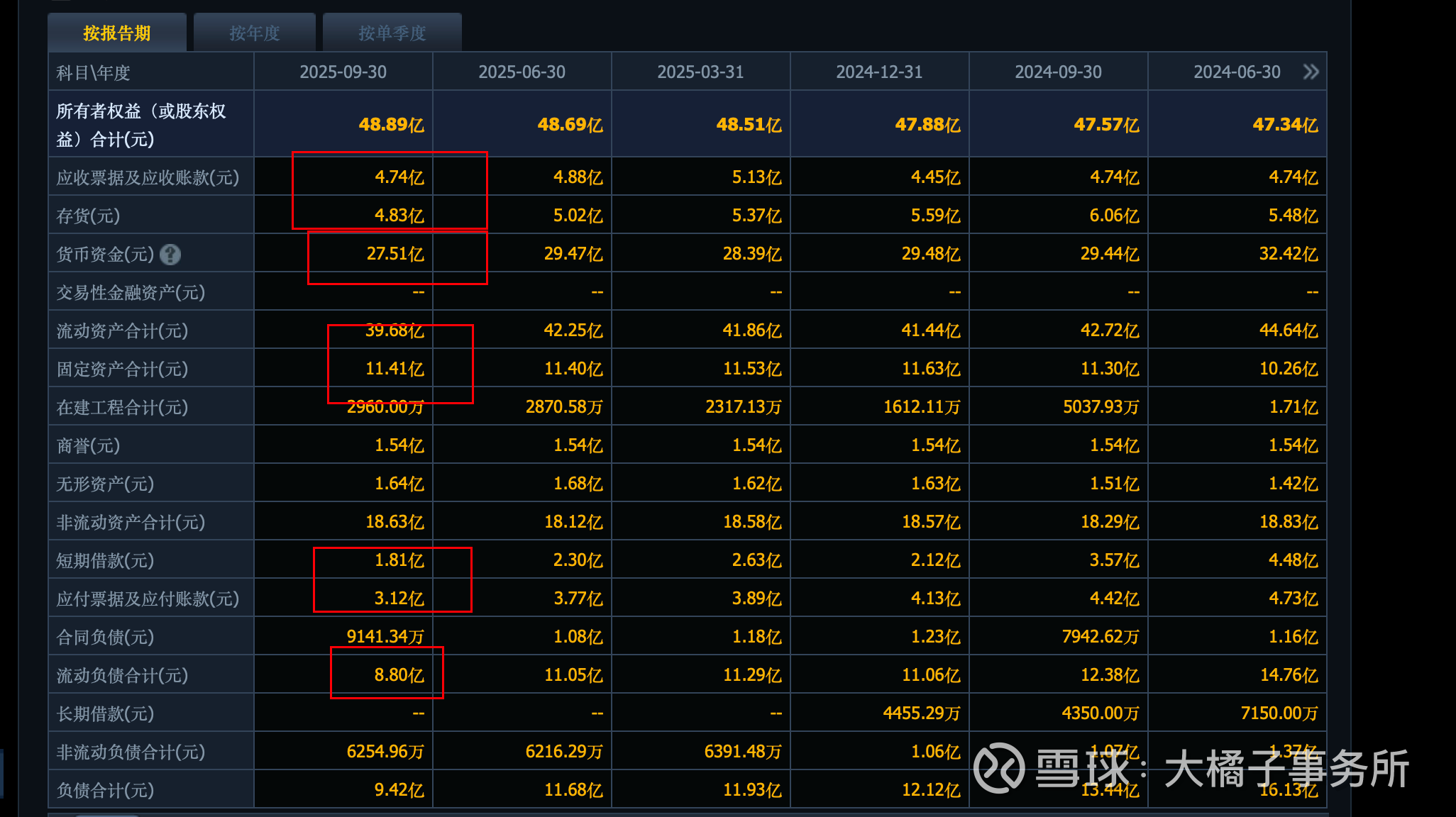 48 亿的权益里面:27 亿是纯现金,还有 11 亿的固定资产大头。债务只有 9 亿了,基本都是流动债务。家底结构回归健康。
