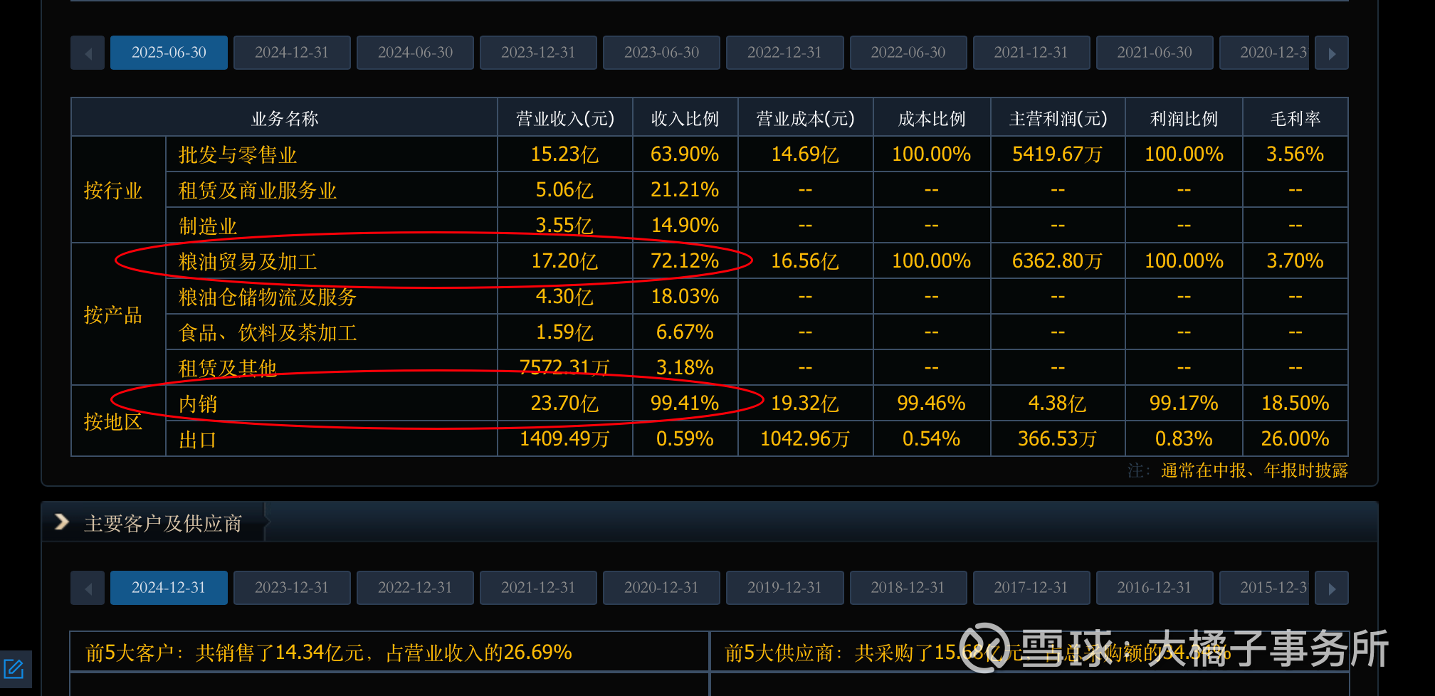 批发零售业务、食品加工制造业务、租赁及商务服务业务。公司的主要产品是粮油贸易及加工、粮油仓储物流及服务、食品、饮料及茶加工、租赁及其他。