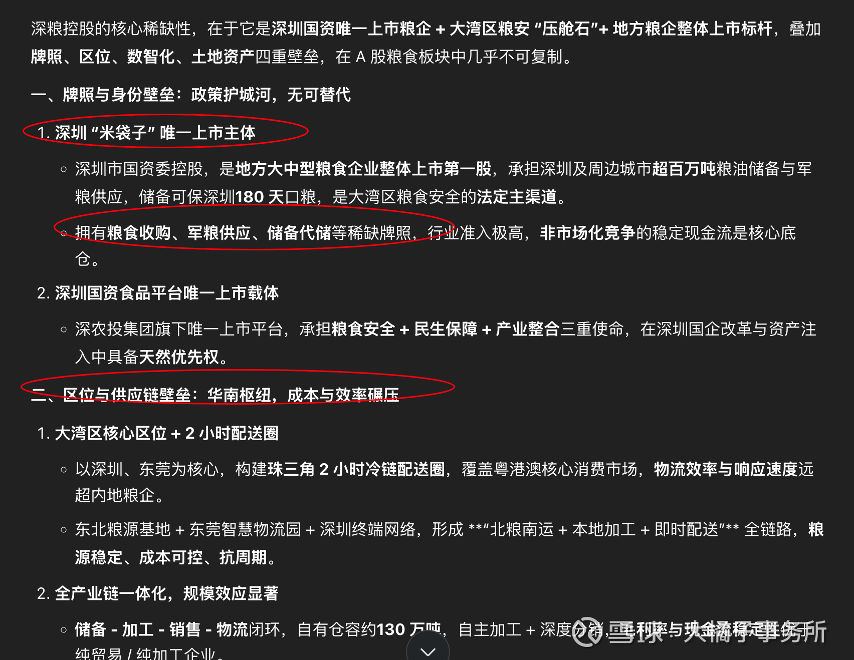 稀缺性体现:深圳市国资委控股,是地方大中型粮食企业整体上市第一股。