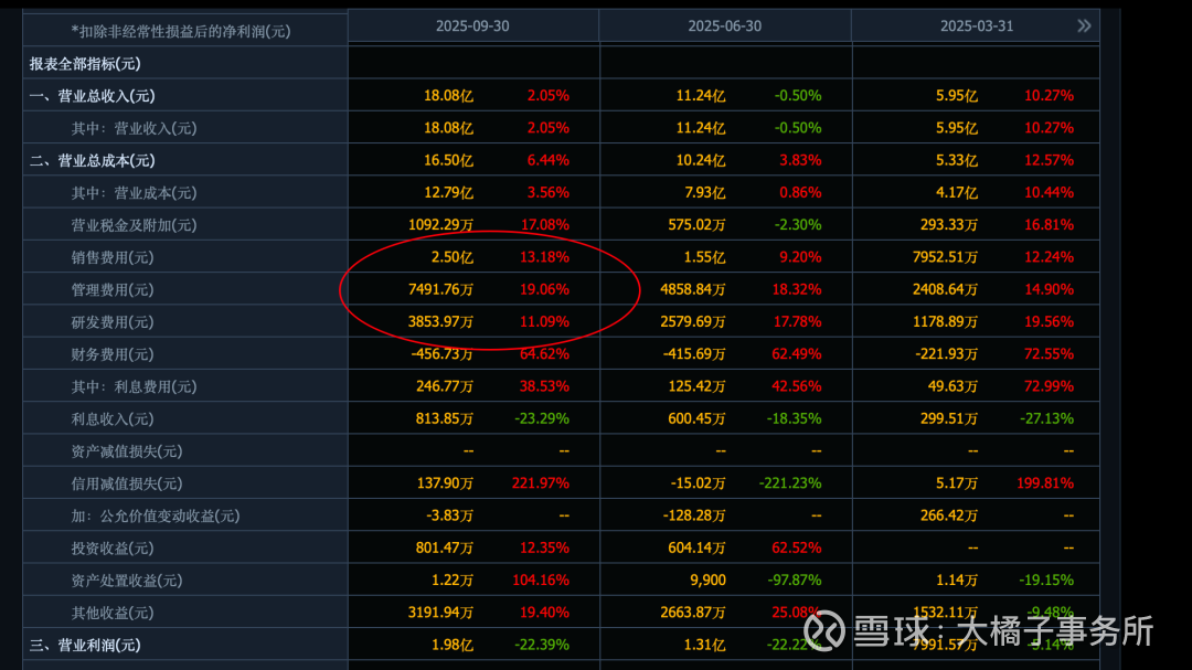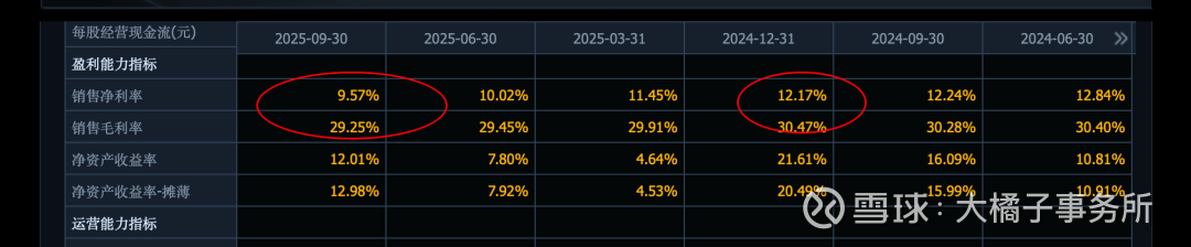 实际 2025 年已经承压,利润下滑 25%,三费增长更多,不到 15% 的销售费用比例,销售费用结构合理;70%+ 的高营业成本比例:
