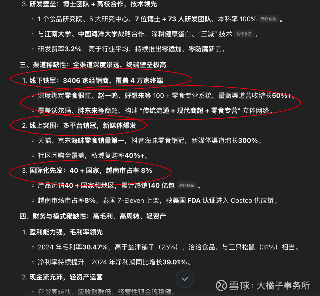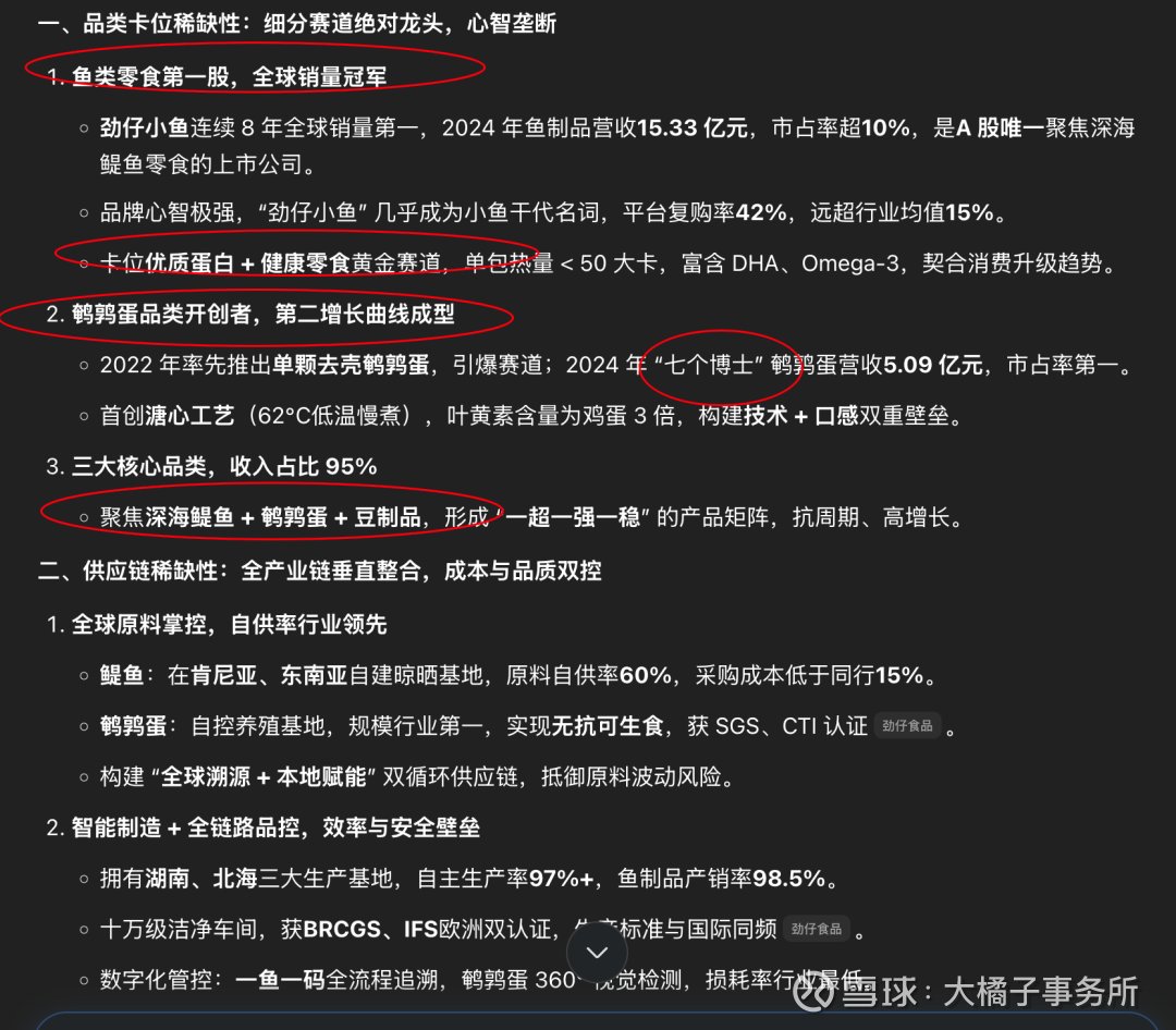 A 股唯一鱼类零食龙头 + 全产业链垂直整合 + 健康蛋白赛道卡位 + 全渠道深度渗透 + 国际化先发的组合壁垒,在万亿休闲零食赛道中形成了 “单品极致 + 品类扩张 + 供应链掌控 + 渠道壁垒” 的不可复制优势。