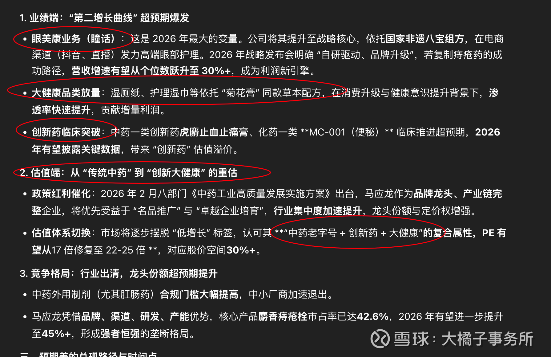 2026 年最大的预期差:在于市场对其 “传统肛肠药低增长” 的刻板认知,与公司 “创新药 + 眼美康 + 大健康” 三驾马车共振带来的业绩与估值双升之间的巨大鸿沟。