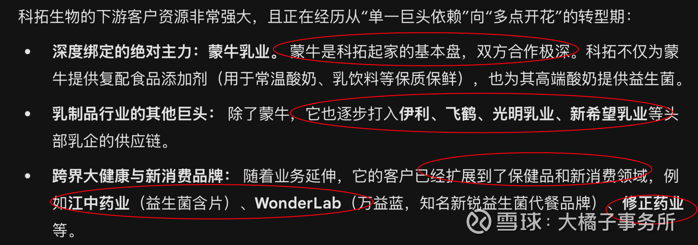 科拓生物的下游客户资源非常强大,且正在经历从“单一巨头依赖”向“多点开花”的转型期: