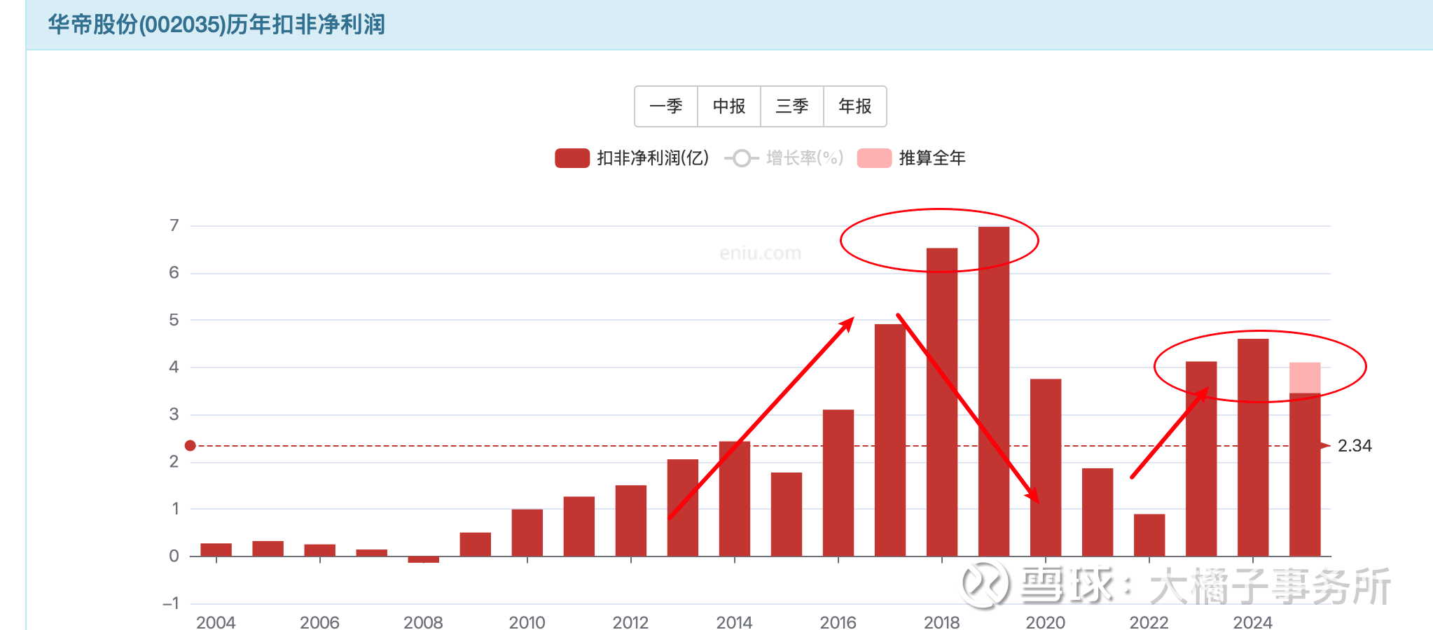利润周期性明显,原来 6-7 亿最高,当下 4 亿最高: