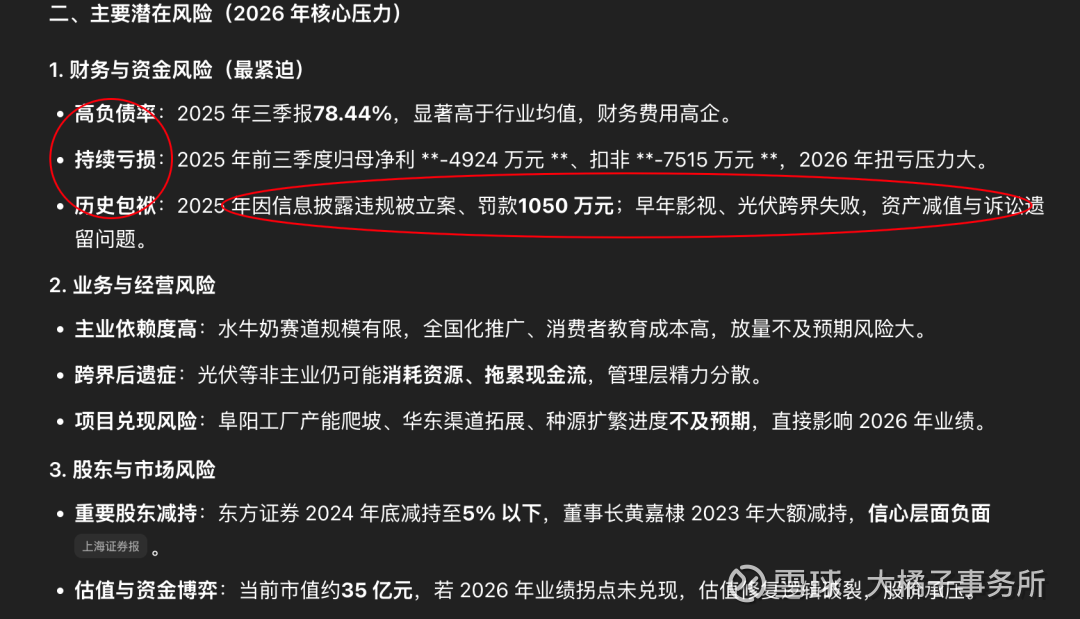 利润持续亏损:只能投机炒作。一个消费品企业,一年卖 20 亿以上,利润却一直亏着,要么经营能力太差了,要么就是财务表上有猫腻“不干净”。总之是风险。异常。不符合常识。