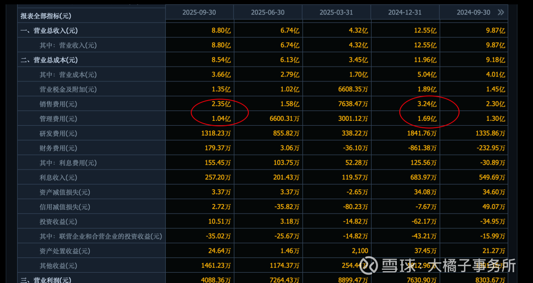 高的销售 + 管理费用: