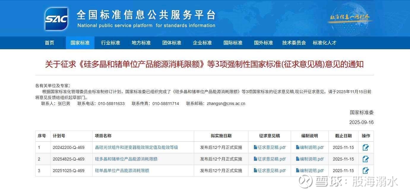今天在全国标准信息公共平台出现了一个征求意见稿,主要是针对多晶硅能耗要求的,详细信息大家均可登录官网查询