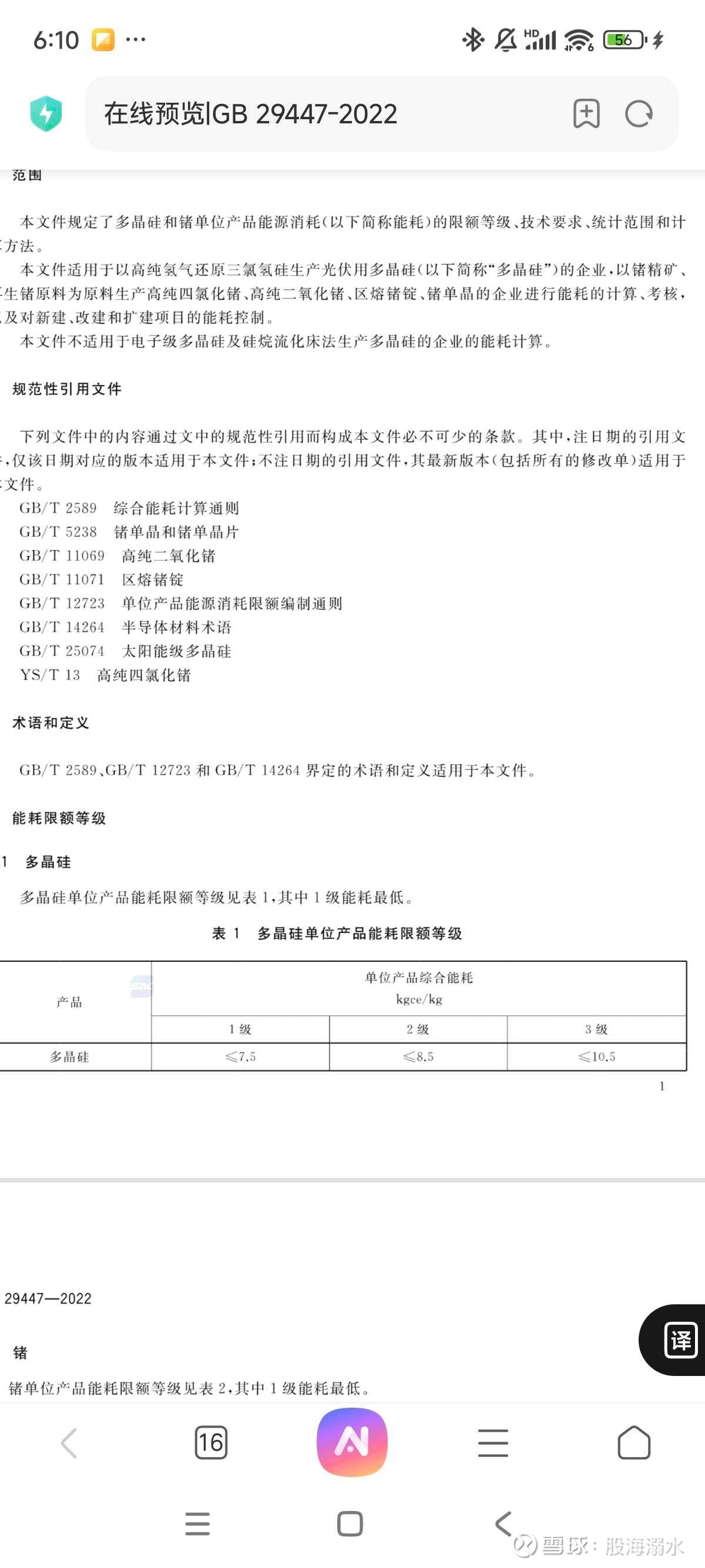 在老版的能耗要求里,详细如下图$协鑫科技(03800)$ $通威股份(SH600438)$ $大全能源(SH688303)$