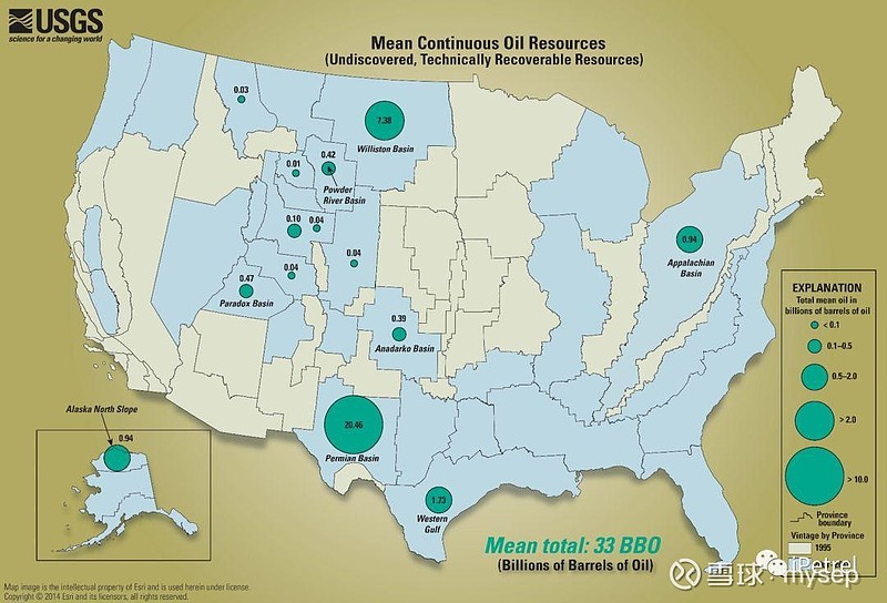 2018年12月6日,USGS再一次公布了二叠盆地西部次盆Delaware盆地的连续型非常规资源量,同样是Wolfcamp页岩和上覆BoneSpring地层,未开发、技术可采资源量(均值,非