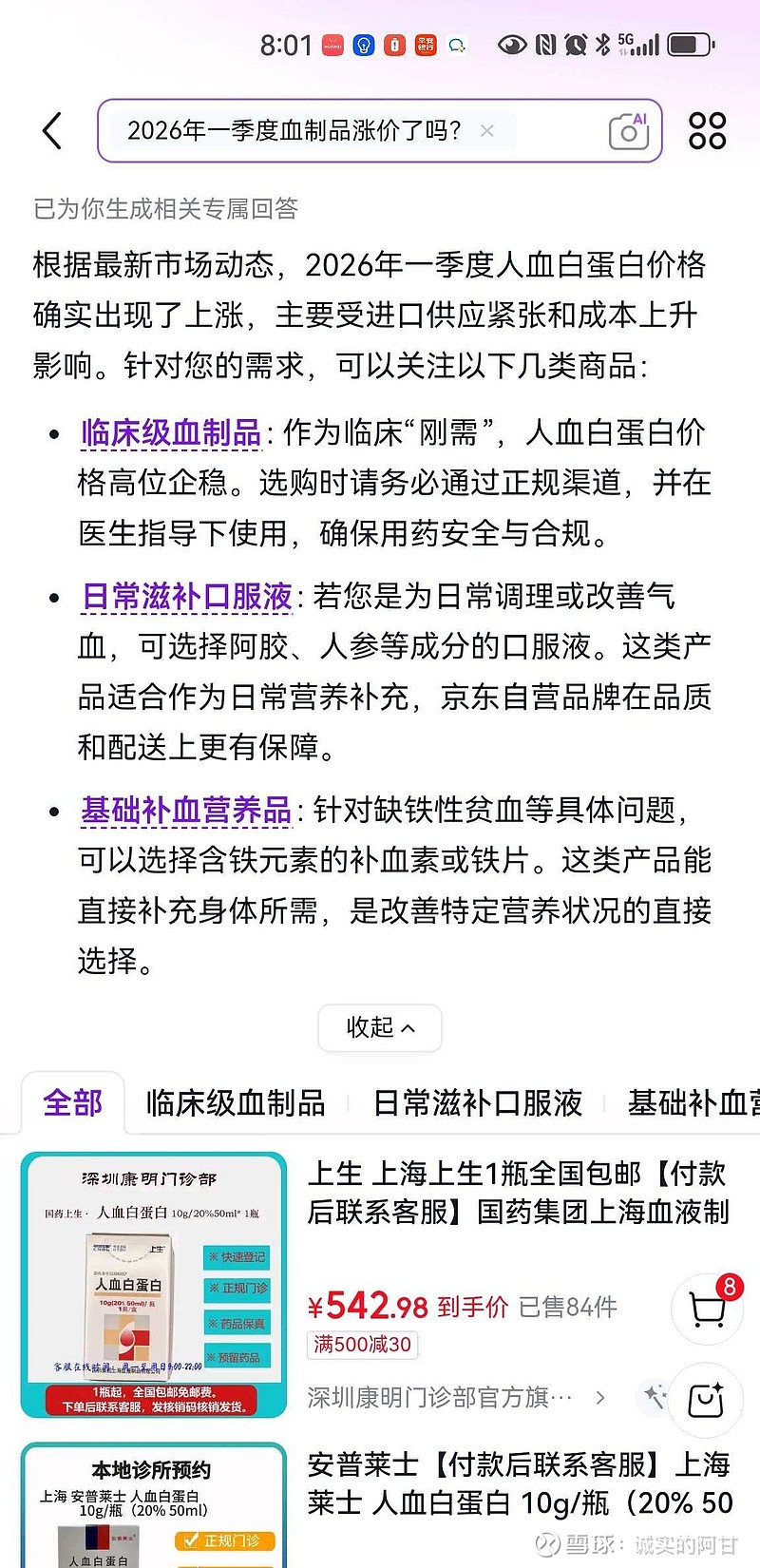 (淘宝答复)根据最新信息,2026年一季度血制品价格确实有变化,具体情况如下: