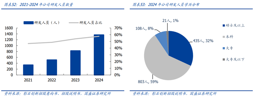 先进的技术优势:作为国家高新技术企业,公司自成立以来便将自主研发设计能力作为核心竞争力,把技术研发投入纳入战略经营计划之中。截至2024年底,公司拥有境内外授权专利900项,其中发明专利189项,实用新型348项,外观设计363项。公司通过自主研发形成了全景图像采集拼接技术、防抖技术、AI影像处理技术、计算摄影技术、软件开发技术框架、模块化防水相机设计技术、音频处理技术和框架等智能影像设备关键领域的核心技术。截至2024年底,公司研发技术人员规模达1367人,占员工总数的57.68%,其中硕士及以上占比31.82%,本科占比58.74%,形成了一支学科交叉、梯队合理的高素质研发队伍。