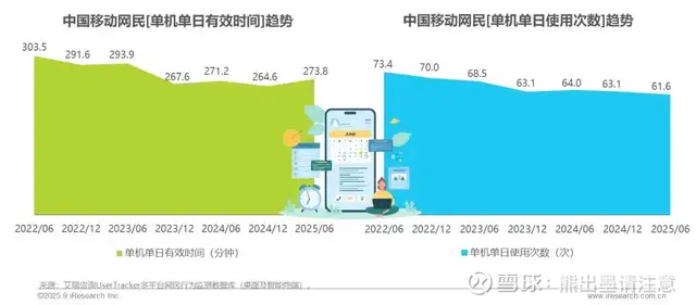 艾瑞咨询9月份发布的《2025H1 中国移动互联网流量半年报告》显示,2025 年上半年中国移动互联网用户单机单日使用时长/次数持续下滑,从303.5 分钟降至 273 分钟,次数从73.4次降至61.6次,降幅均超 10%。这表明用户正从被动时间消耗转向主动价值获取,单纯的算法投喂已难以满足深层需求。算法倦怠催生“信任社交分发”需求,在此背景下,不依赖算法的内容传播模式成为新探索方向。