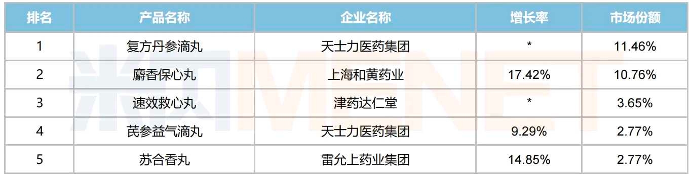 2025Q1~Q3中国公立医疗机构终端中成药丸剂品牌TOP5: