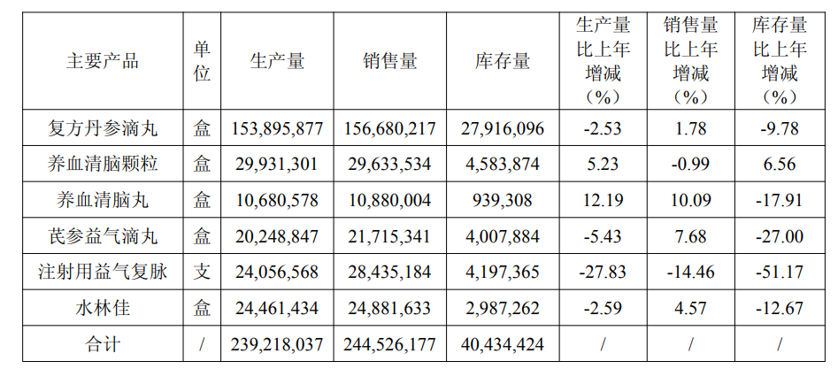 复方丹参滴丸销售量小幅增加,复合预期。除了注射用益气复脉下滑较多外,其他品种销售量都是正增长的。
