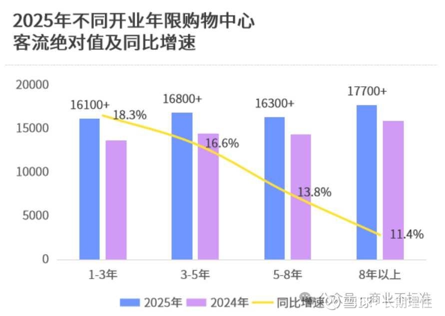 从开业年限来看:1-3年的新项目,客流增速18.3%,是增长核心。