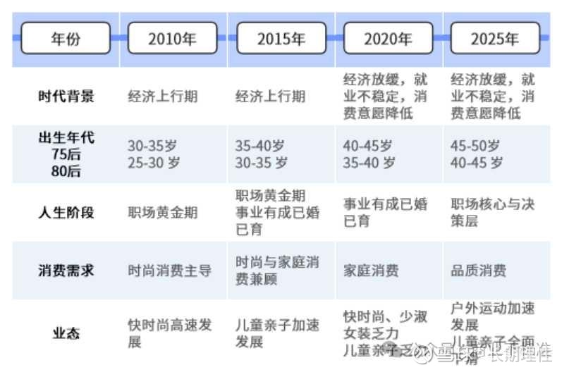 2025年,75-85年出生的人年龄达到40-50岁。孩子大了,婴幼儿消费基本结束了,但家庭消费能力正旺。这个阶段的人,既有钱,又有闲,还处在"品质升级"的窗口期。