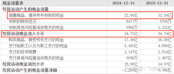 2024年,中科电气销售商品、提供劳务收到的现金同比下降了29.63%,比2023年少了近10亿元。