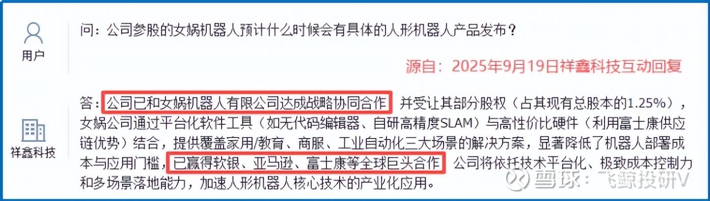 2025年3月祥鑫科技与三度智能联手,共同推进“人形机器人关键技术”研发;6月,又投资了女娲机器人,这一招可谓“以小博大”。