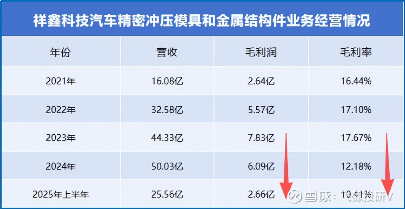 祥鑫科技的主业是汽车精密冲压模具和金属结构件,2025年上半年,该业务营收占比达71.54%。