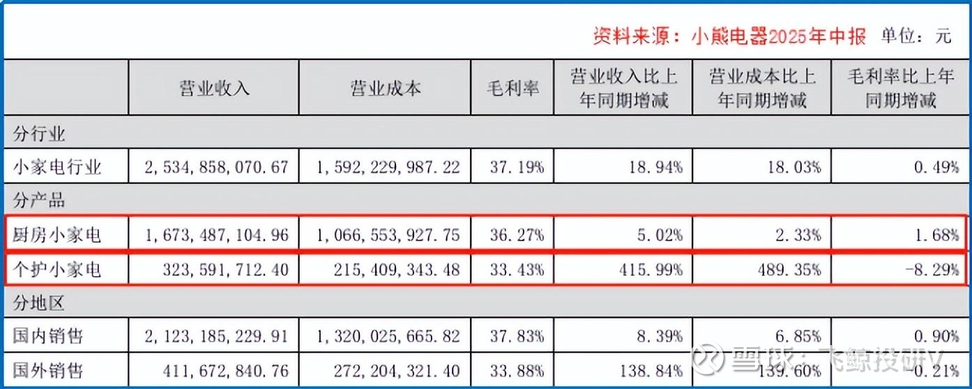 效果立竿见影。2024年,个护业务在小熊营收中占比只有7.6%;到了2025年上半年,已迅速涨到12.77%,成为公司第二大业务。