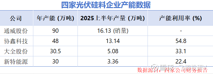 从产能规模看,新特能源现有多晶硅年产能30万吨,但2025年上半年实际产量仅3.36万吨,产能利用率22.4%。